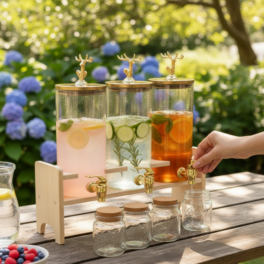 Antler-Topped Dispenser with Airtight Lid and Bamboo Stand – 3-Piece