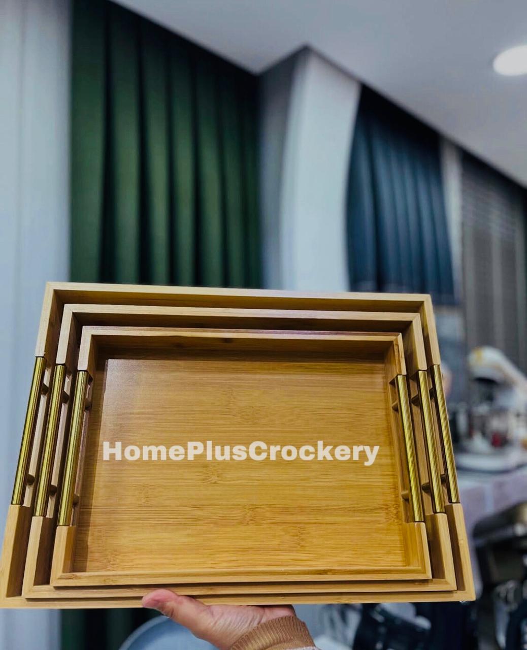 Here is a product description for a 3-piece bamboo tray: