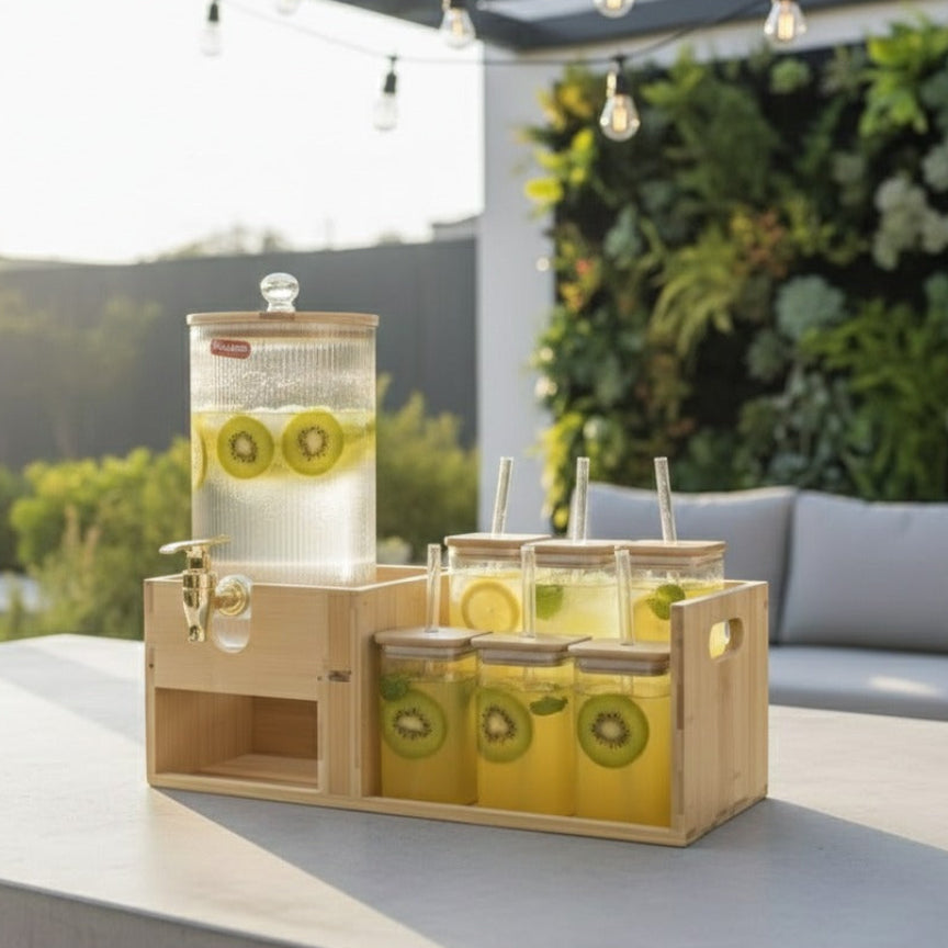 Bamboo Beverage Station -Glass Dispenser and Tumblers with Straws (1151)