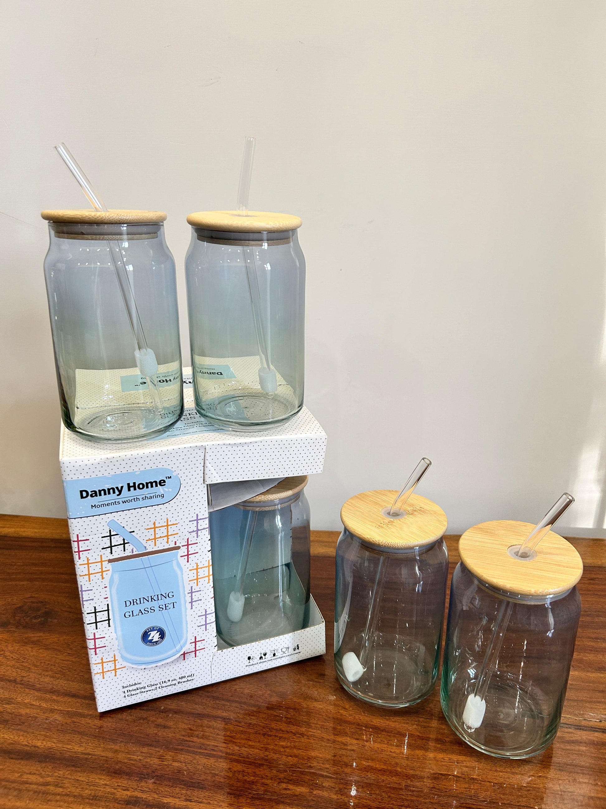 ✅Including 4 Sipper With Wooden Lid, Glass Straw & Cleaning Brush