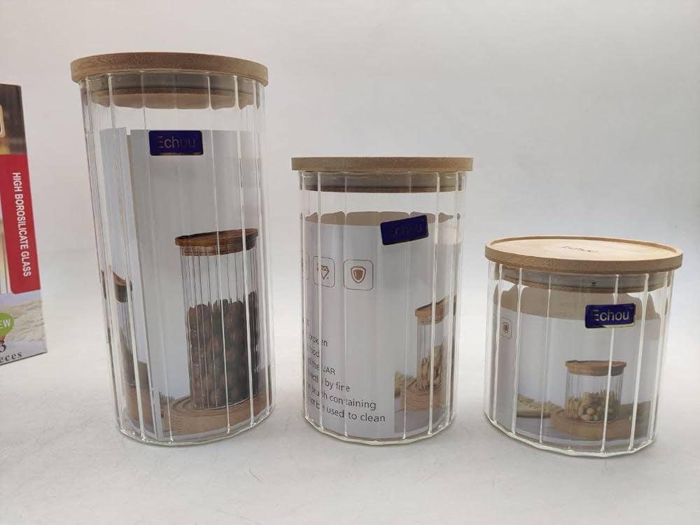 Ideal for storing and organizing kitchen essentials, this GLASS JAR SET helps keep your ingredients fresh and easily accessible. With 100% glass construction, these jars provide a clear view of contents and are also dishwasher safe for easy cleaning. Say goodbye to messy and cluttered cabinets with this convenient set.