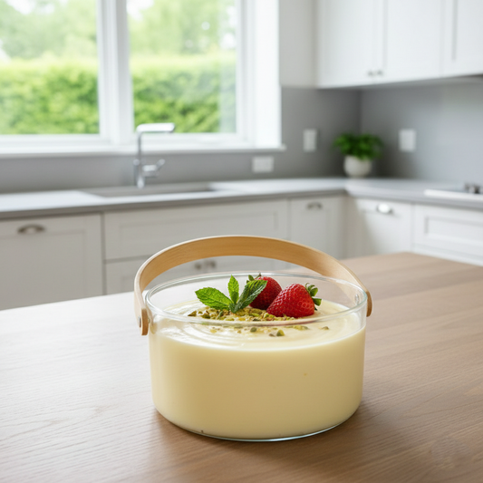 Elegant Glass Serving Bowl with Wood Handle (1161)