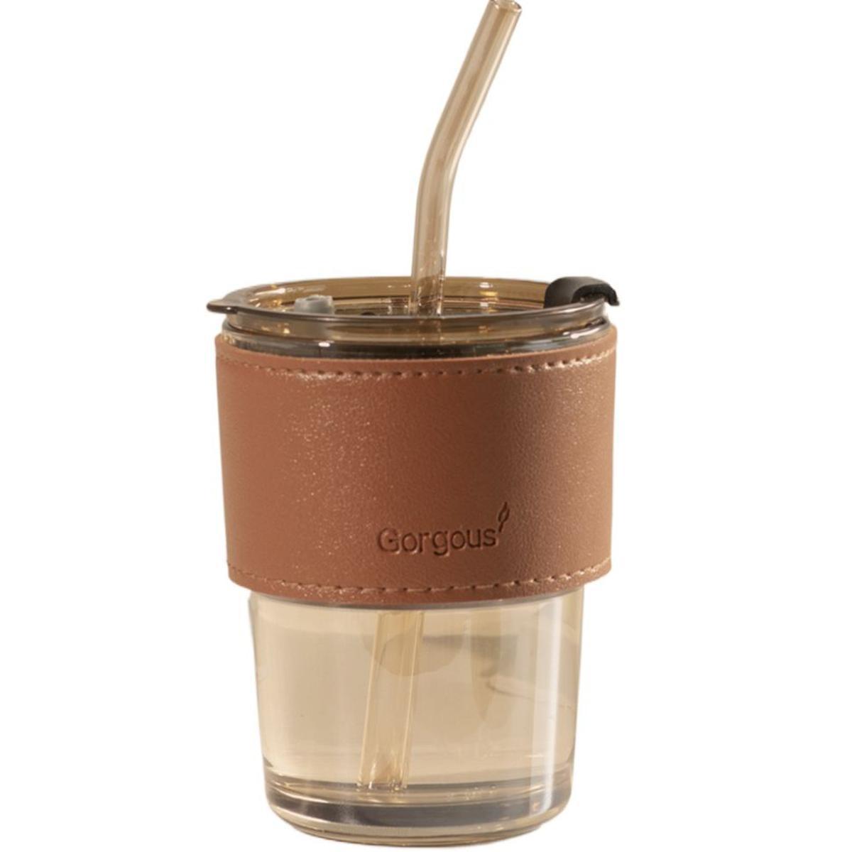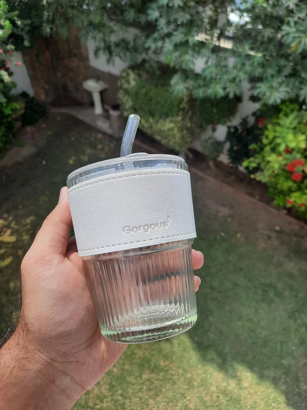Glass Sipper With Leather and Glass Straw