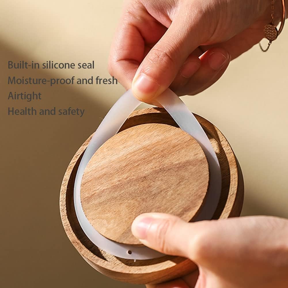 【Airtight Storage】Glass jar with wood lid, each made of natural wood,no odor and the sealed glass jar has a food-grade silicone seal on the lid. The silicone seal acts as a seal to ensure your food stays fresh and protect against air moisture or bugs! The durable quality makes it last for years.