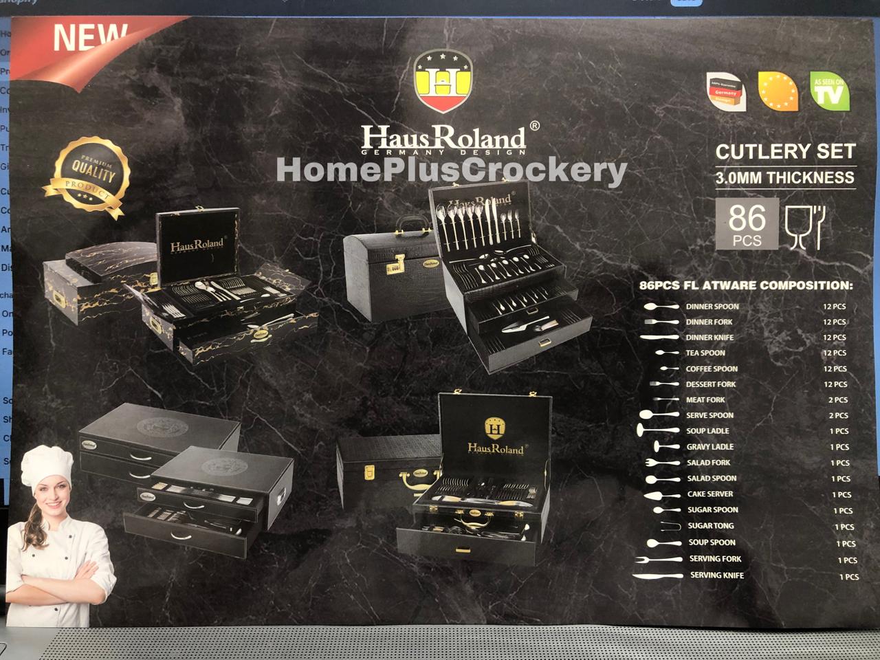 The Haus Roland Cutlery Set includes 86 pieces of high-quality stainless steel cutlery, perfect for all your dining needs. Each piece features a sleek and elegant design, adding a touch of sophistication to your table setting. Enjoy a lifetime of durability and style with this must-have set.