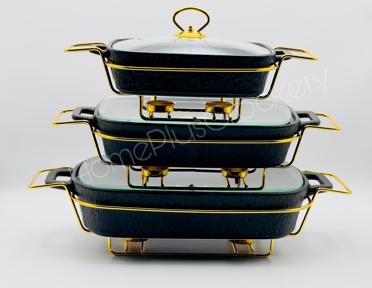 1. Matt Finish Burner Dish: "Elevate your serving style with our sleek matt finish buffet dish, perfect for showcasing your culinary creations. Made from high-quality materials, this dish is designed for durability and ease of use."