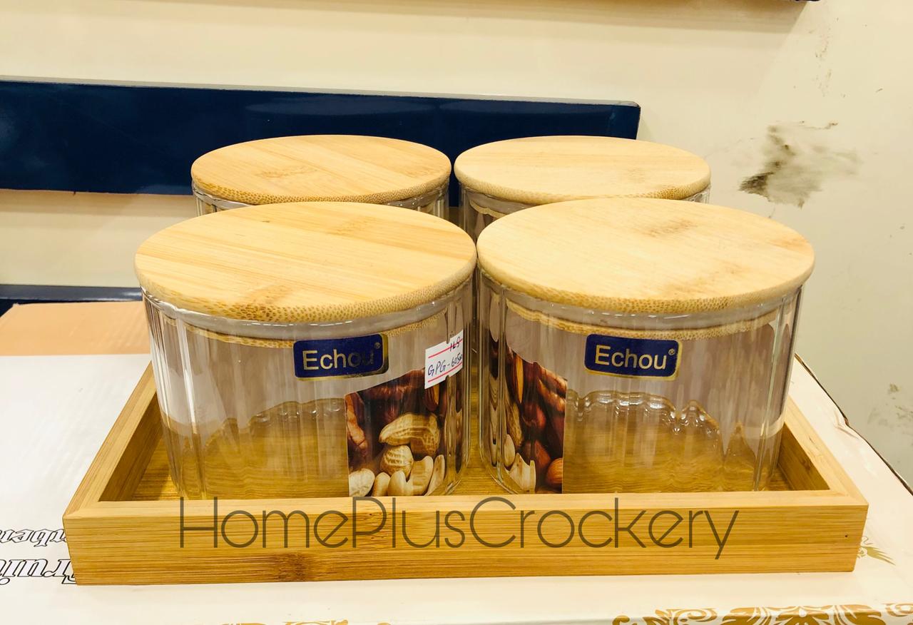 Elevate your home decor and add a touch of natural elegance with our round glass dry fruit jar with bamboo tray. Perfect for storing dry fruits, nuts, or other snacks, this beautifully crafted jar and tray set is a must-have for any home.