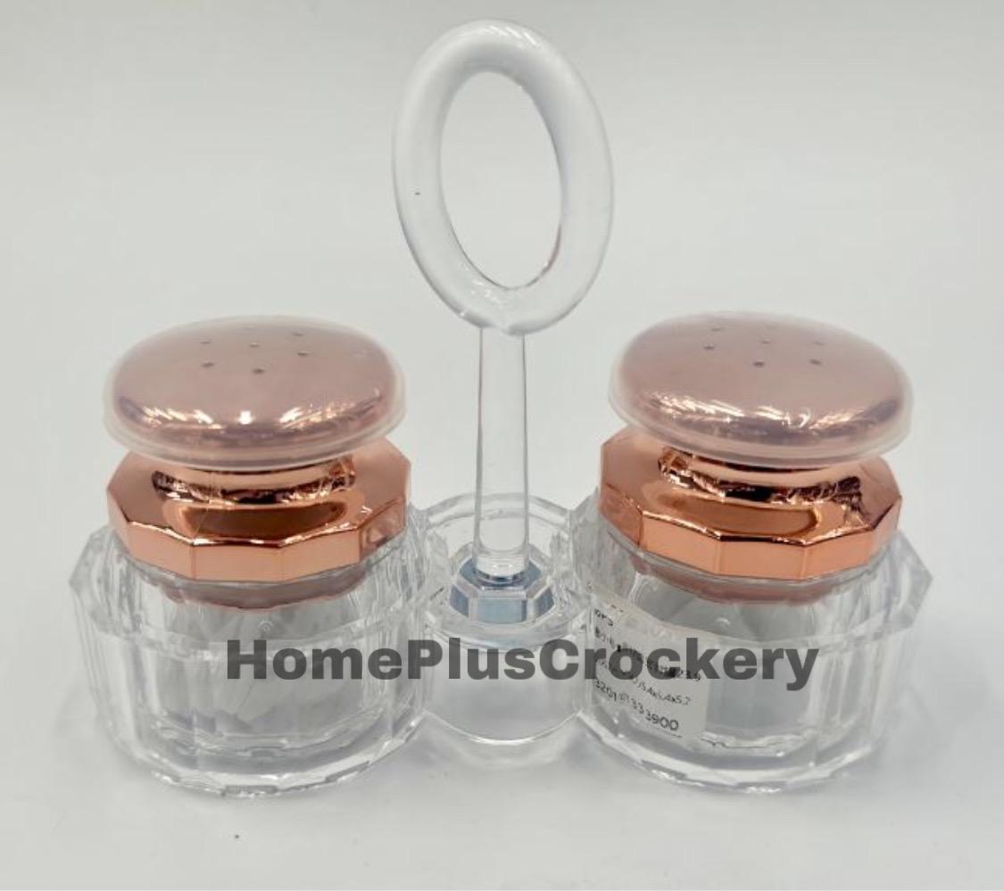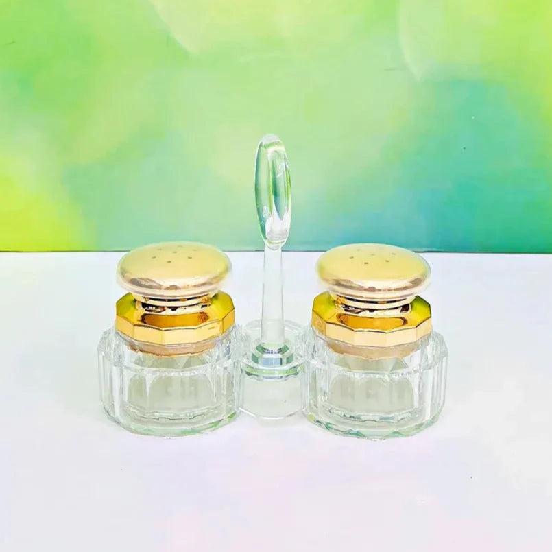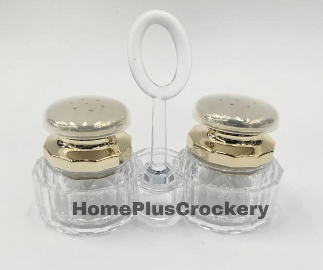 Elegant Design: Crafted from high-quality acrylic, these salt and pepper shakers boast a transparent gold finish