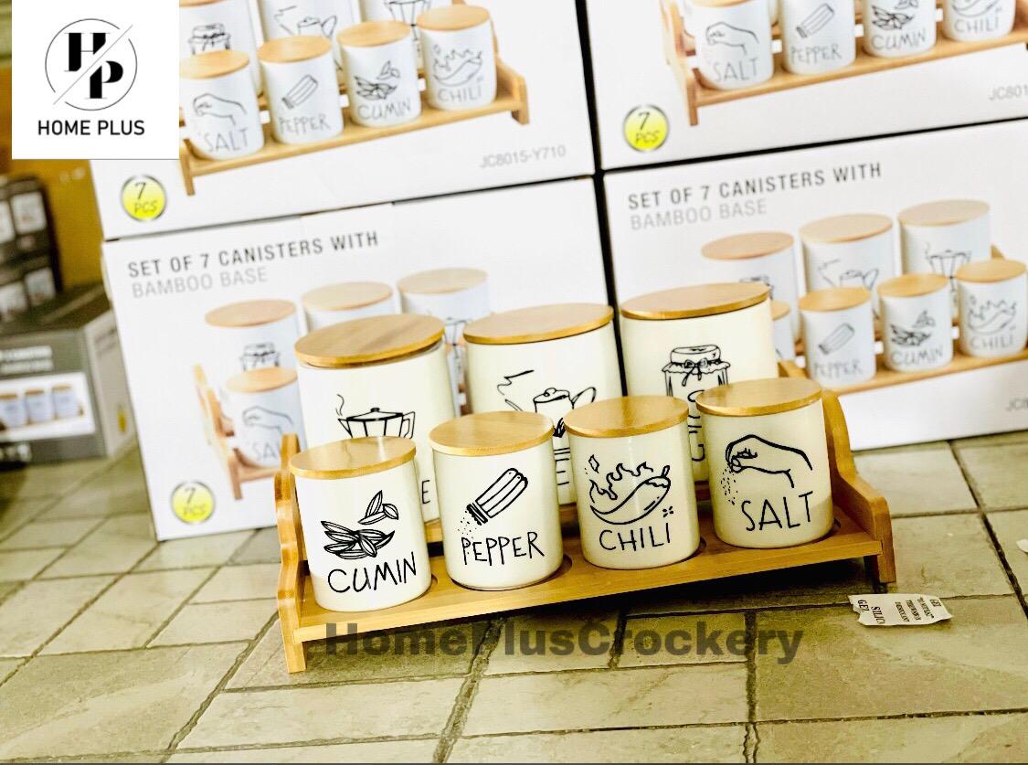 "Elevate your kitchen's style and organization with this stunning 7-piece porcelain spice jar set, complete with a beautifully crafted wooden stand. The jars are made from high-quality porcelain, ensuring durability and a sophisticated look. Each jar features an airtight lid to preserve the freshness and flavor of your spices.