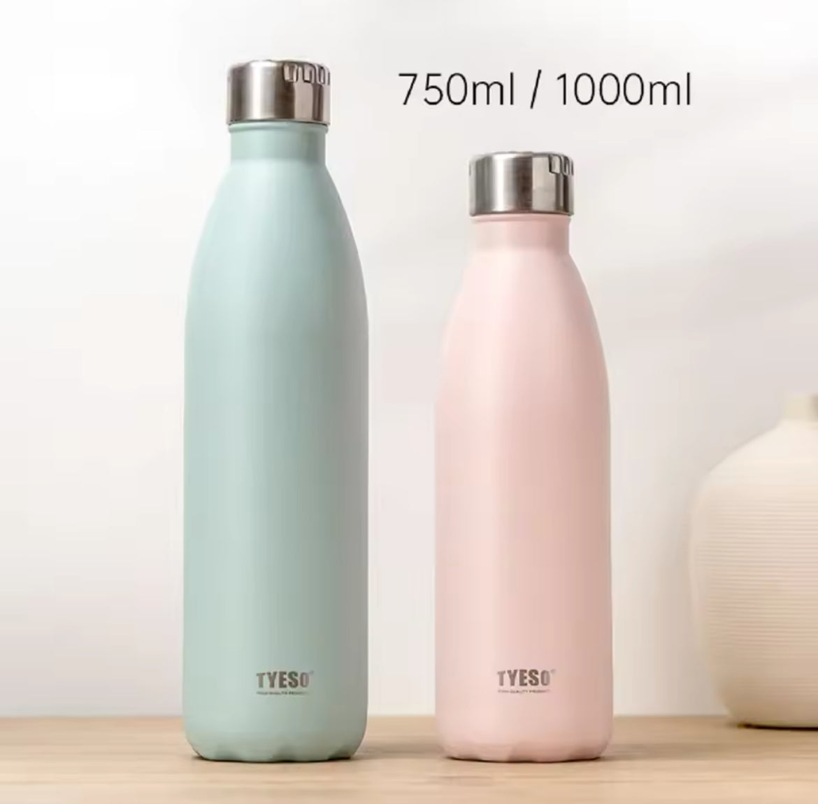 TYESO Orignal Stainless Steel Insulated Water Bottles For Hot And Cold Beverages 750ml And 1000ml