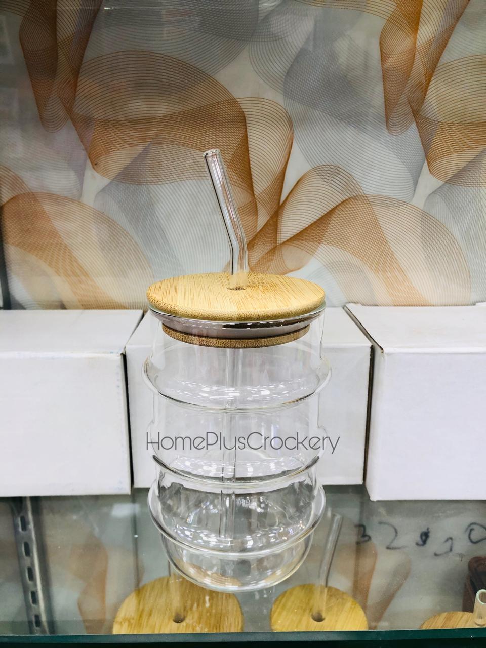 Packing: 1 X Glass with Glass Straw and wooden lid